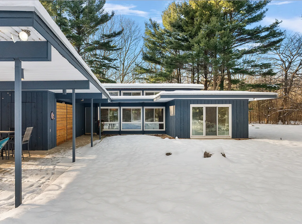 Tucked into the woods, this property offers patios off of all the bedrooms.